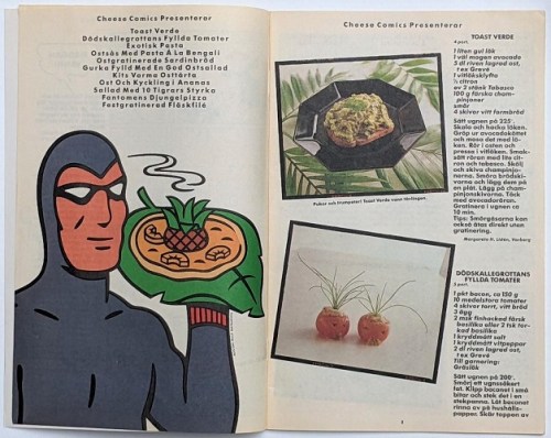Below we see the advertisement for the badges within the Recipe Book, plus the badge featuring the Phantom in his blue costume as he’s seen in Sweden.