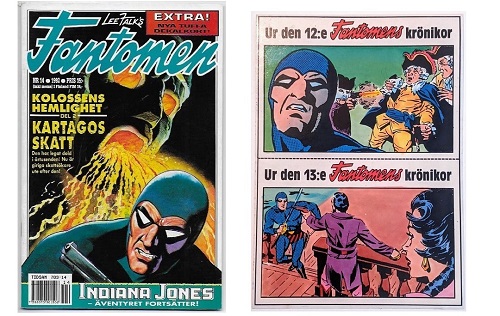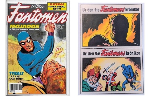 An uncut sheet of 2 gloss finish stickers were inserted loosely into select Fantomen issues in 1992. These editions are: