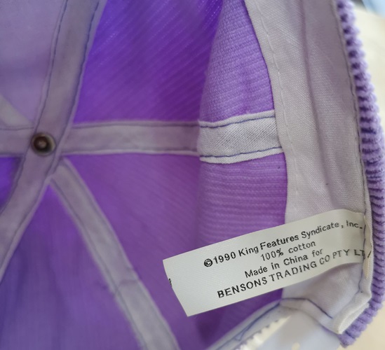 The Phantom Corduroy Hats were released by Bensons Trading Co Pty Ltd in Australia in 1990. Made in China, the hats are licensed by King Features Syndicate.