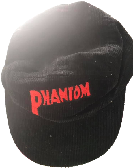 Made of 100% Cotton Corduroy fabric, 2 varying colors were released, light purple and black. The hats contain machine stitched embroidery ‘Phantom’ wording at the front in red, in the style as seen on the covers of Frew Publications Phantom comic books in Australia. No other images or words are found on the hats. Both Phantom Corduroy Hats can be seen below.
