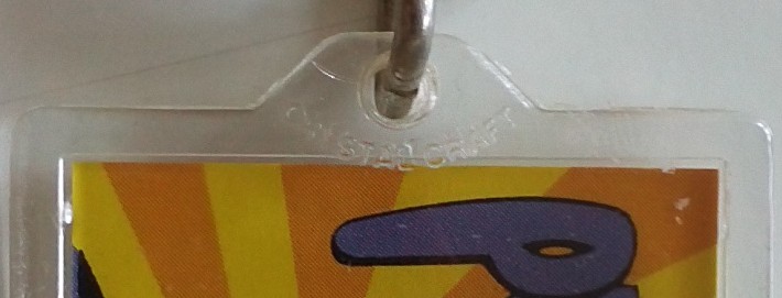 On both the front and back of each key ring, along the lower edges in fine print, one can find the year of manufacture along with the copyright notice. Additionally, embossed in the plastic at the apex of the key rings are the producer’s name, ‘Crystal Craft,’ as can be seen below.