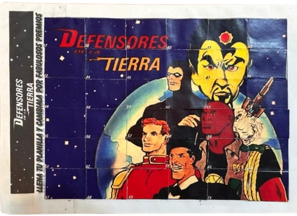The Defensores De La Tierra (which translates to Defenders of the Earth) Trading Card Set was produced in Mexico in 1987. The set is made up of 72 cards and is themed around the Defenders of the Earth cartoon series produced in 1986 featuring the Phantom, Mandrake the Magician, Lothar, Flash Gordon and Ming the Merciless.