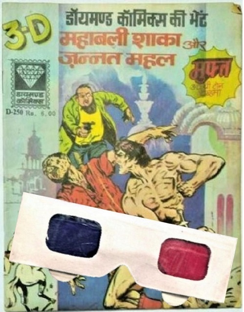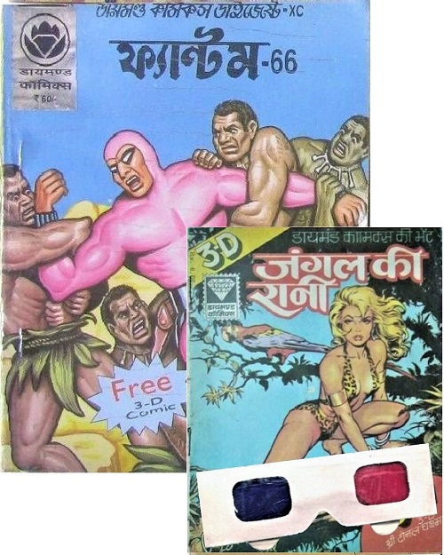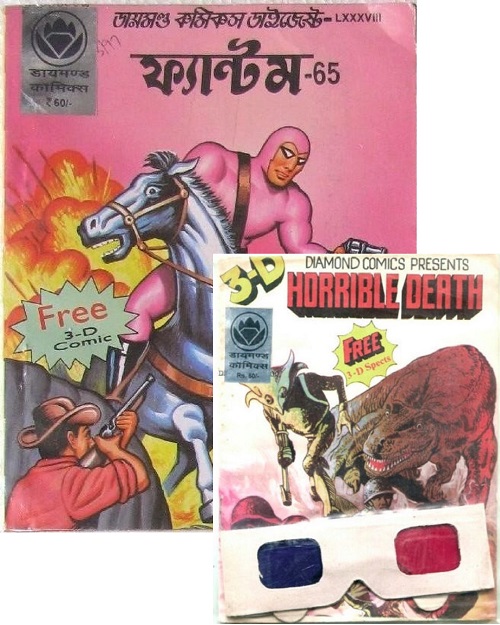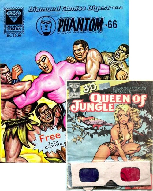 The Phantom 3D comic book was a free giveaway to its readers, one of 5 different 6” x 7.5” 3D mini comics inside English, Bengali and Hindi Phantom comic numbers 63, 65, 66, 67, 68 and 69, 1997.