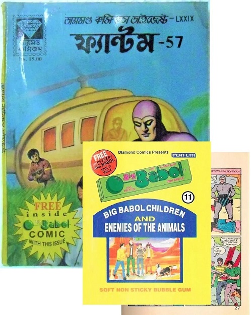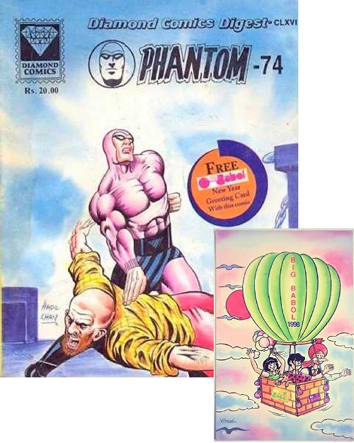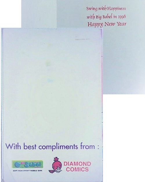 Big Babol/Big Bubble chewing gum was launched in India, 1994. As a part of Big Babol’s advertising campaign, Big Babol partnered with Diamond Comics offering a free New Years Greeting Card which was included inside Phantom comic number 74, 1998.