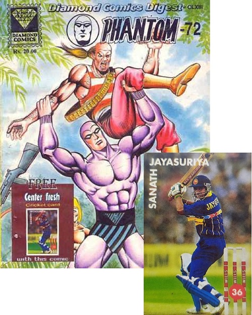 During the 1990’s with its color publication of the Phantom digest, in English, Hindi and Bangali it offered its readers; a variety of crossover collectibles, comics and contests. There were even several instances where retail companies would provide Diamond Comics with free items to promote their own product(s). These free offers were primarily advertised on the front covers of the comic issues. It should be noted that some of the same numbered comic issues displayed a specific offer on the cover while others did not.