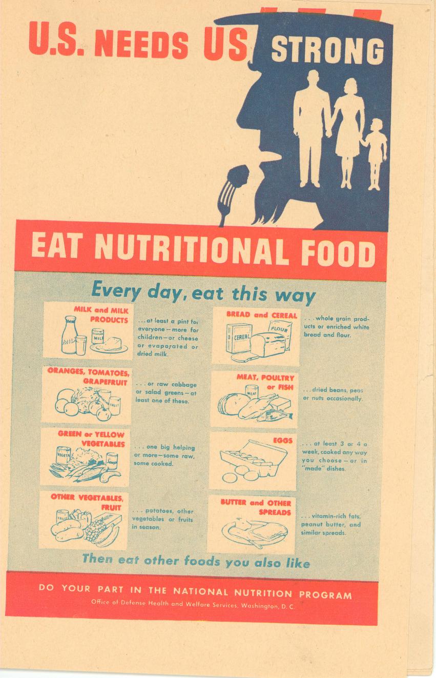 Eat Right To Work And Win was published during World War II by the ‘Office of Defense Health and Welfare Services’.