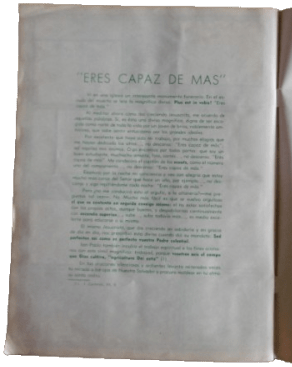 No matter how excellent my work has been, no matter how many compliments others have given me during my break. “You are capable of more”: we encourage you my on mos Ogo commends everywhere that I am a good student, a kind, fine, courteous boy…, I do not distrust “You are capable of more”. The captain of the scouts decorates me, as the number one of the group does not rest “You are capable of more”.