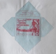 The cards were sold at newspaper stands throughout Spain in blue colored paper packets, with each pack containing 8 cards costing 30 Spanish Pesetas. An image of the Phantom is found on the front of the packet, which was glued closed at the rear, holding the 8 cards within. Below we see the packet fully opened, with the triangular sections which were folded back at all four corners.