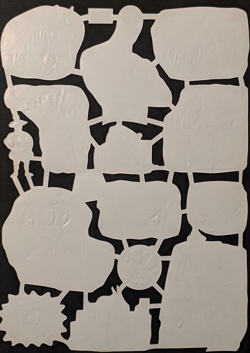 Once unfolded, a variety of 14 images are seen, all themed around the Phantom. The images are designed to be separated from each other, held together by small yellow tabs and utilized as Bookmarks.
