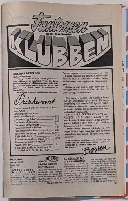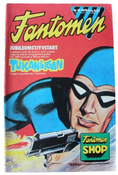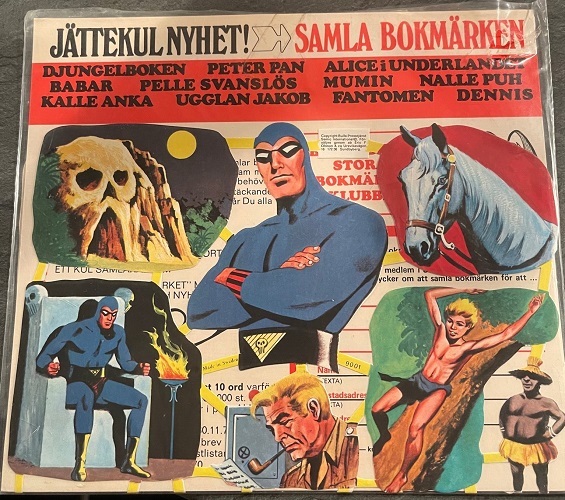 The Fantomen Bookmark set was also advertised and sold in Fantomen comic books in Sweden. Below we see an advertisement in Fantomen edition number 18 published in 1979. Amongst the list of merchandise available for purchase is a ‘Fantomen Boketiketter’, which translates to ‘Phantom Book Labels’.