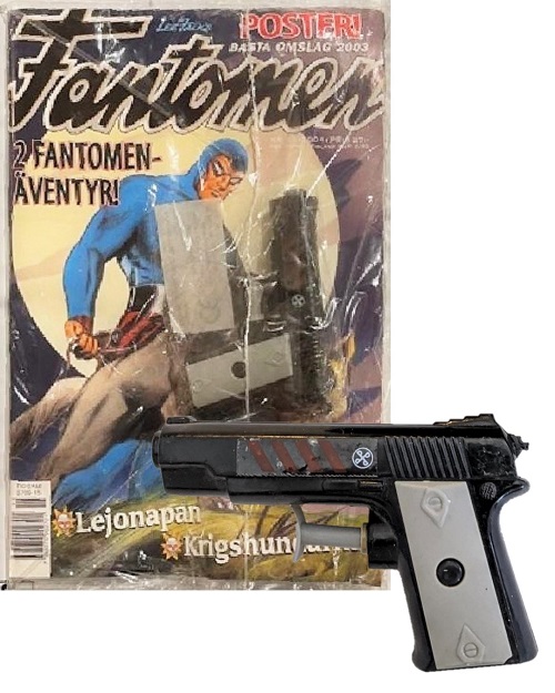 On rare occasions Fantomen comic book covers would also feature a particular collectible for sale.