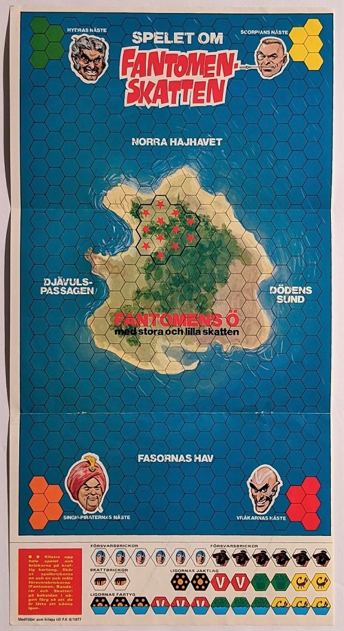 During the 1950’s and 1960’s, select issues contained various strategy games stapled in the center of Fantomen comic book issues.