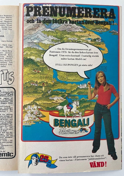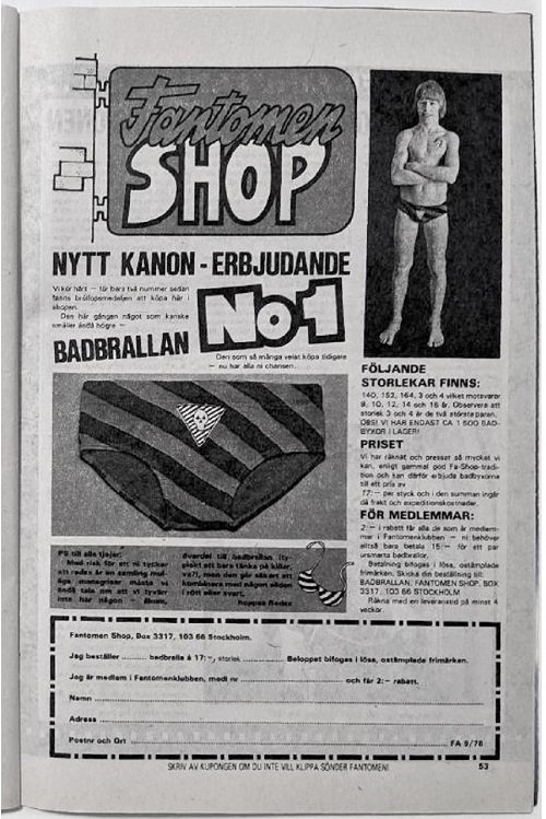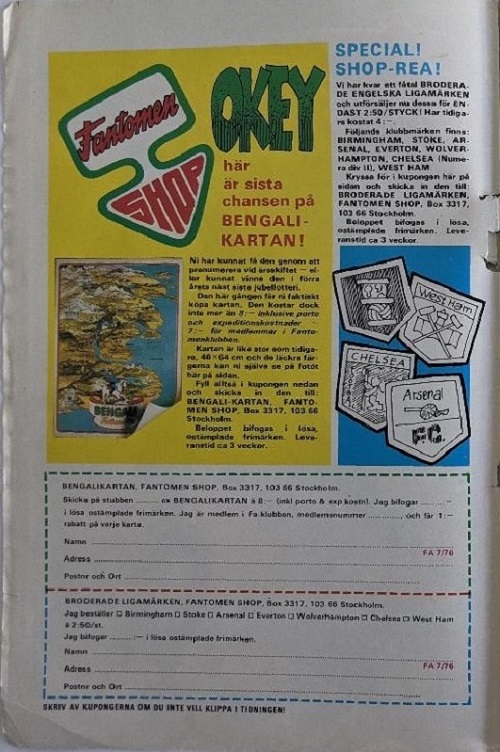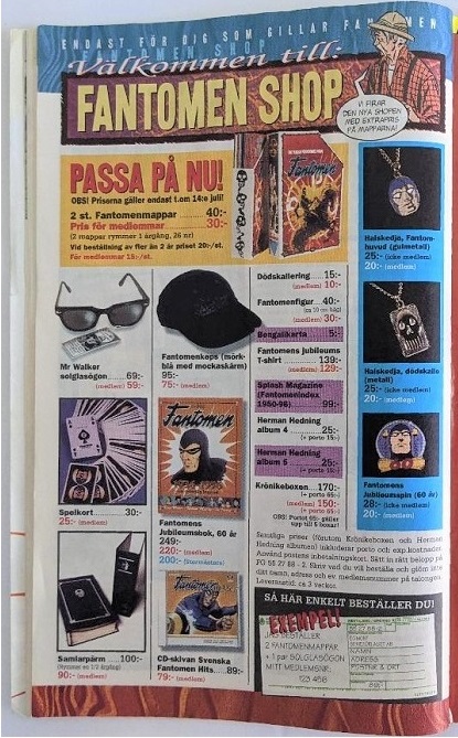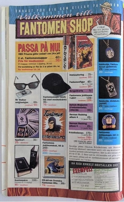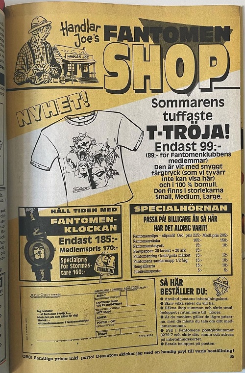 Beginning in 1972, select Fantomen issues contained 1-3 pages of advertisements titled ‘Fantomen Shop’, where readers could select from various collectibles for sale.
