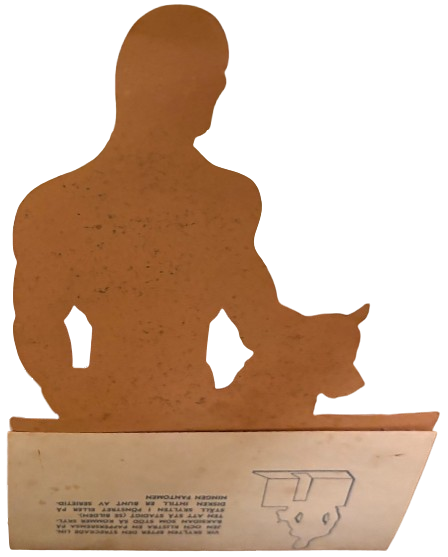 The Fantomen Comic Book Display Sign is made of cardboard with print found on the one side in full color, measuring 33cm x 22cm. The Phantom is pictured with his faithful mountain wolf, Devil, appearing in the older, more sketched artistic style characteristic of the mid-century.