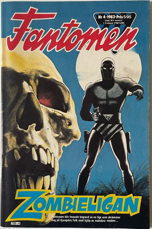 The pin was produced by Abe-Pust Stockholm with the Phantom seen seated on the Skull Throne with the words ‘Fantomen Klubben’ at the base.