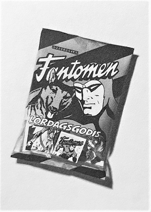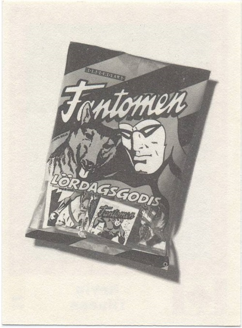The Fantomen Lördagsgodis Candy bag advertised on the back of the hockey stickers can be seen below. In Sweden the candy bag title ‘Lördagsgodis’ translates to ‘Saturday sweets’.