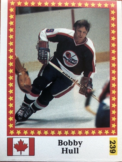 Other examples of Fantomen Lördagsgodis candy advertisements found on the back of hockey stickers of Kevin Dineen and Bobby Hull can be seen below.