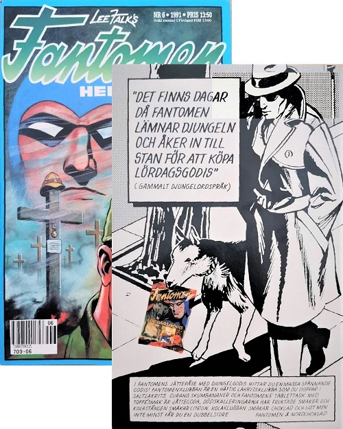 The inside cover page of Fantomen comic book number 6, published in 1991 advertised Fantomen Lördagsgodis candy.