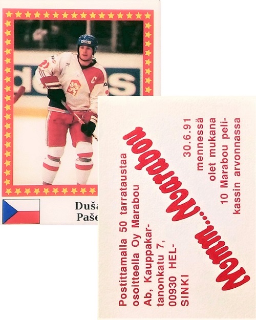 Dušan Pašek Slovak was a professional ice hockey forward who played 48 games in the National Hockey League. He won a silver medal at the 1984 Winter Olympics and represented Czechoslovakia at three Canada Cups. He also won a gold medal at the 1985 World Ice Hockey Championships. Between 1982 and 2017 Pašek‘s image has been seen on dozens of different trading cards.