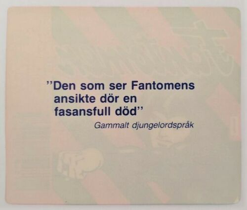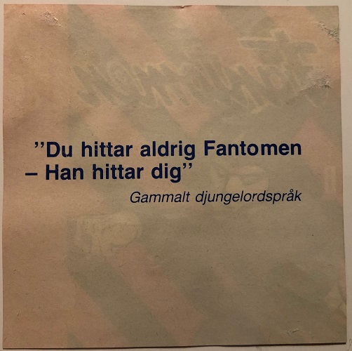 A small bottle neck label is also found on the bottle, which reads ‘Las Djungelordspraket Pa Baksidan Av Etiketten’, which translates to ‘Read the Jungle saying on the back of the label’. Once the soft drink is consumed, the back of the label reveals a Phantom ‘Jungle Saying’, with a variety of quotes published. 3 examples can be seen below.