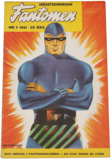 The art found on the top of the lid of the Fantomen Spelet board game is similar to the illustration found on the Fantomen comic book cover of edition number 1, published in 1951 in Sweden. The illustration is credited to George Camitz.