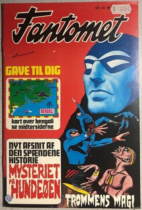 The Fantomet Bengali Map Poster was released by Interpresse in Denmark in 1974. The Bengali Map was a free giveaway item with Fantomet comic book edition number 42. Interpresse announce the free map on the front cover of the comic book, noting that it’s in the centerfold of the comic.