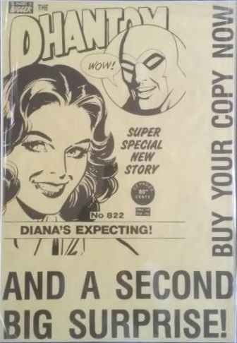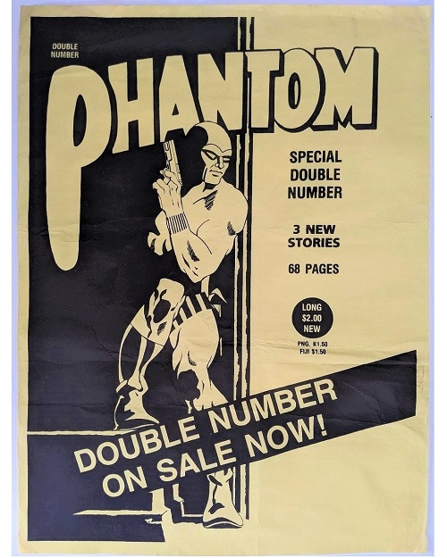 Over the years, Frew Publications produced various promotional collateral designed to advertise a particular Phantom comic in Australian news agencies where Phantom comics are sold. The promotional collateral would be on display for several weeks by the newsagent before being thrown out.
