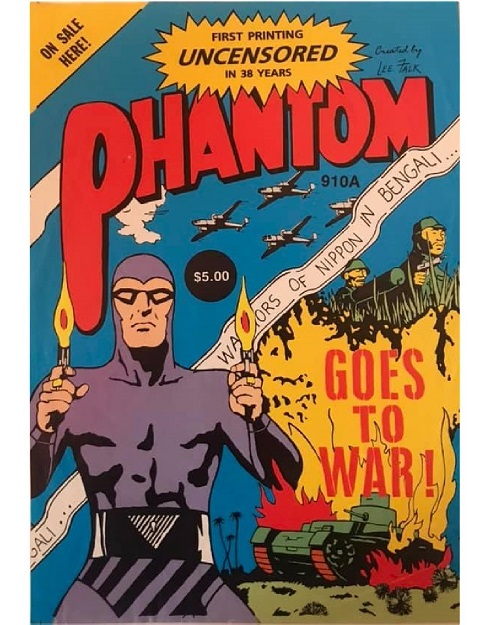 The 1988 promotional poster advertising Phantom comic book number 910A contained the famous story The Phantom Goes to War by Lee Falk, Ray Moore, and Wilson McCoy.