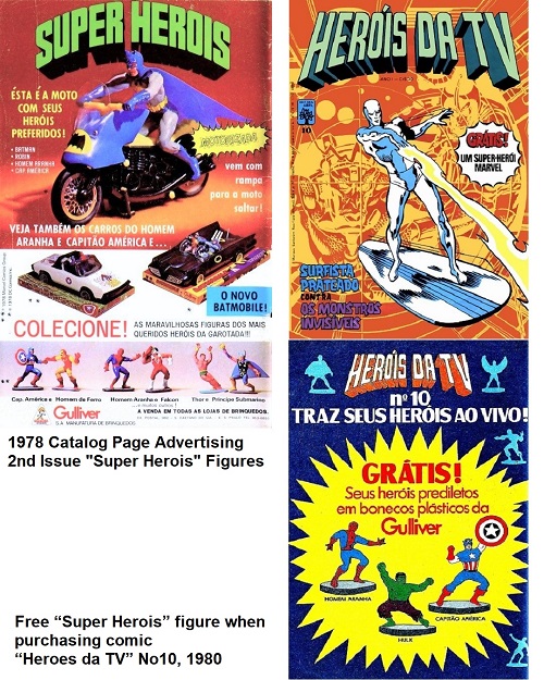 In April, 1980, ‘Editora Abril’ promoted the ‘Super Herois’ figures by giving one figure as a free gift with the purchase of comic book, Heroes da TV No10. These figures were not painted but monochromatic colored plastic figures. It is believed the Phantom figure was not part of this free offer.