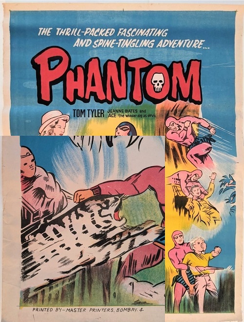 A unique poster promoting the Phantom Serial was produced in India approximately 30 years after the USA release in 1943. Very little is know about this Indian version of the poster, however some indicators lead us to believe that it was produced and issued in the early 1970’s.