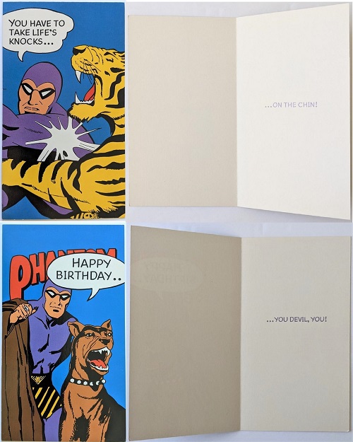 The Phantom Greeting Cards were produced by John Sands Cards in Australia in 1989. 12 different Greeting Cards were released and distributed in Australian news agencies.