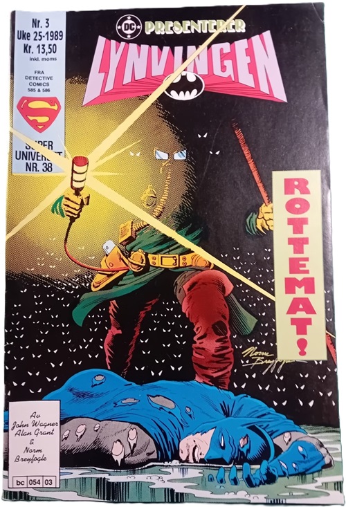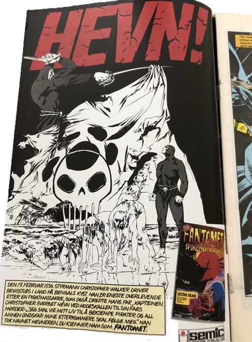 The illustration was also used by Semic/Nordisk Forlag to promote the Phantom in other comic book series by the same publisher, featured in full page advertisements. An example can be seen below in Batman edition number 3 published in 1989, with a full page advertisement seen on the inside front cover of the comic book.