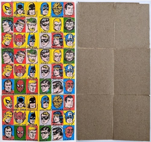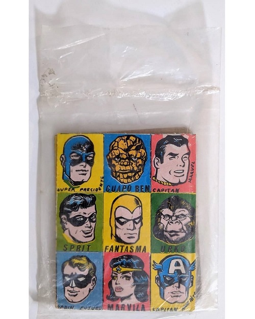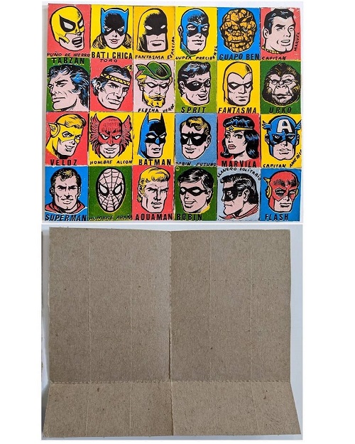 Each Loteria Game Card is made of thin cardboard measuring 4.5” x 3.5 with each character panel within each Loteria Game Card measuring 1.5” x 1”. A total of 22 comic characters are found, including Space Ghost, Bat Girl, Atom, The Thing, Shazam, Tarzan, Tonto, Green Arrow, The Spirit, Urko, Superman, Spiderman, Robin, Lone Ranger, Aquaman, Flash, Kid Flash, The Falcon, Batman, Robin Hood, Wonder Woman and Captain America.