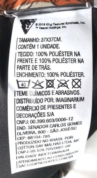 Two stitched-on labels are found on the side of the Phantom Cushion, one label containing Ludi’s logo, with the second label containing King Features Syndicate copyright information plus washing/care instructions.