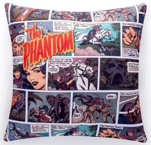 The Phantom Cushion was produced by Ludi and distributed by Imaginarium in Brazil in 2018. The cushion features a Phantom comic strip design, which is fully licensed by King Features Syndicate.