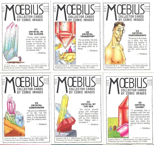 The Moebius Trading Cards are produced by Comic Images in USA in 1993. A set of cards is made up of 90 common trading cards, plus 6 chromium chase cards.