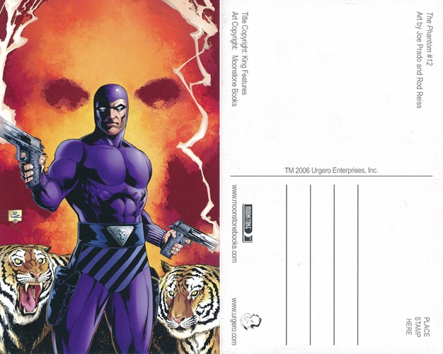 The Phantom postcards were produced by Moonstone Books in USA in 2006. A total of 18 postcards are found in the set, with 2 featuring the Phantom, created to promote the various titles and series in print by Moonstone Books at the time. Both Phantom postcards are fully licensed by King Features Syndicate.