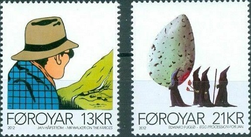 The idea for the two Faroese stamps comes from Niels Halm, director of the Nordic House in Tórshavn, and gives Postverk Føroya an opportunity to play a part in the world of contemporary Nordic art. Normally, only stamps by Faroese artists are released in the Faroe Islands. This time, however, these 2 stamps feature a Swede’s paraphrase of a Faroese artist’s work and vice versa, making this a groundbreaking joint Nordic project.