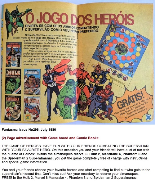 - Fantasma #296 – Published in July 1980 had a centerfold 2 page advertisement illustrating the board game and corresponding comics.