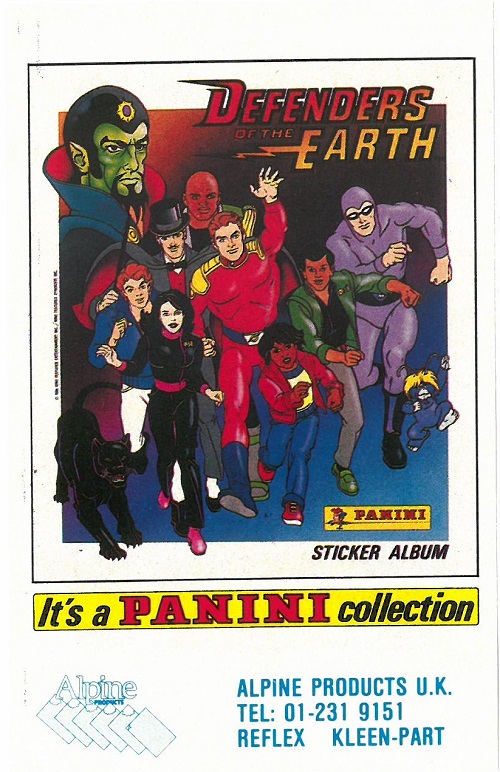 The Phantom is found in the series, as Edizioni Panini S.A.P – Modena produced a Defenders of the Earth sticker series and album. The sticker contains color on the front only, measuring 6.8cm x 10.8cm. The Promotional Sticker featuring the Phantom produced for Alpine Products U.K can be seen below.