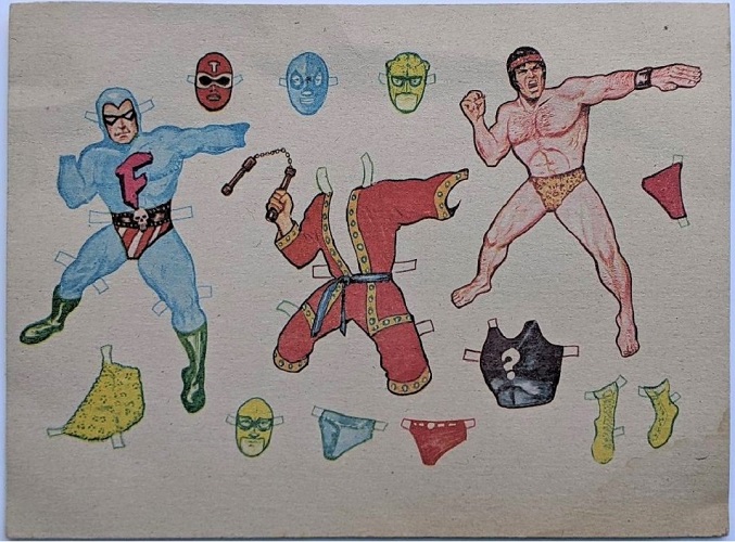 The Phantom Paper Doll Costume Set was produced in Mexico in 1974. Made of thin stock cardboard, the set was produced for the local market and are unlicensed by King Features Syndicate.