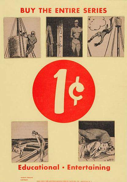 Penny Cards were produced in USA, in the 1940’s and are believed to be the first set of cards to contain images of the Phantom. The cards feature art drawn by Ray Moore, which were used in the ‘Better Little Books‘ series released by the Whitman Publishing Company.