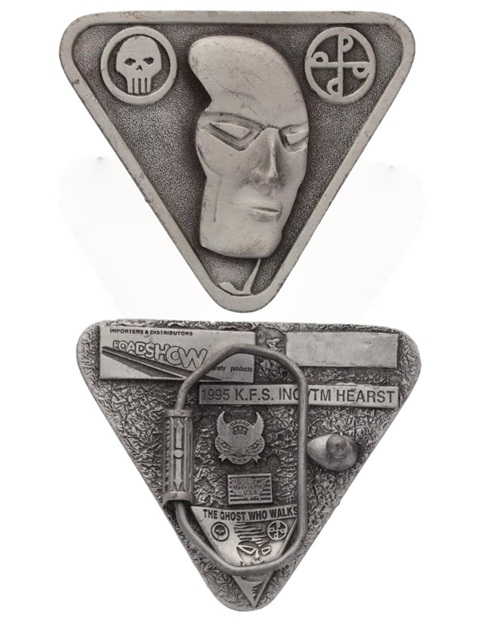The Pewter Phantom Belt Buckle were produced by Roadshow Variety Products in USA in 1995. Roadshow Variety Products, an American importer and distributor known for producing various belt buckles in the 1990s replicated the Phantom Belt Buckle originally released by Bandit Belts in Australia in 1989. The belt buckle is fully licensed by King Features Syndicate.