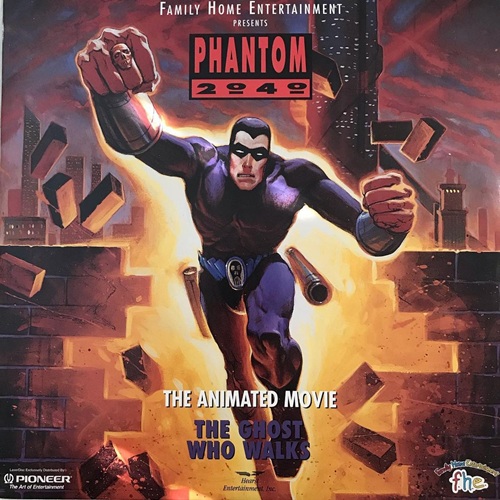 The front and back of the Phantom 2040 LaserDisc can be seen below, which prominently features the Phantom as he’s seen in the Phantom 2040 cartoon series, illustrated in his futuristic costume and weaponry.