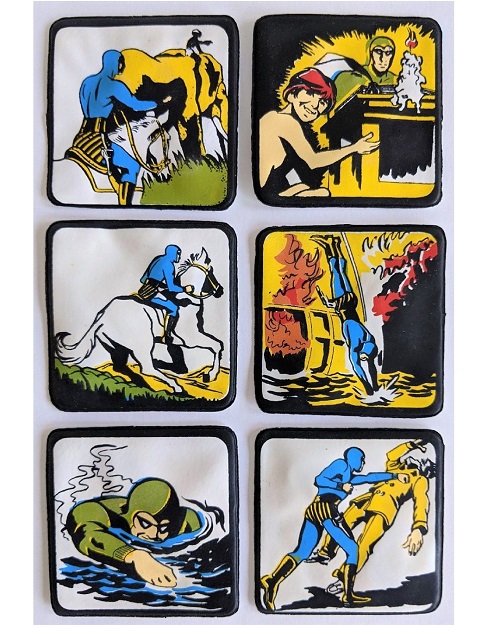 The Phantom 3D Puffy Magnets were produced by Al Nyman & Son, Inc in USA in 1974. A full set is made up of 6 square magnets measuring 2.5” x 2.5”, made of vinyl plastic (hence the common reference of ‘Puffy Magnets’).