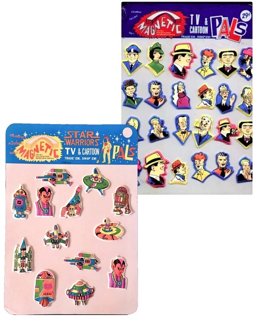 The colorful boxes containing the magnets were designed to be a counter top store display, or in many cases the individual magnets were placed on a magnetic display board for customers to view.