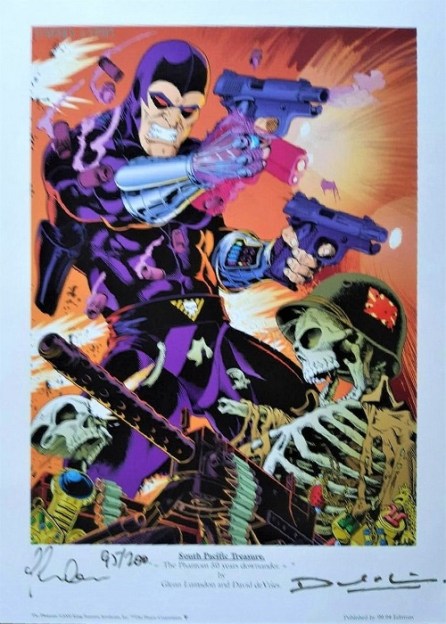 99.94 Editions is the name of a Newcastle based company run by Dietmar Lederwasch, established in 1997. The name of the company is based on Sir. Donald Bradman’s test cricket average, to reflect whatever 99.94 Editions produces, it will also be the greatest. Dietmar Lederwasch is a long time Phantom fan, producing various Phantom merchandise as well as sets of licensed high quality limited edition prints and posters.