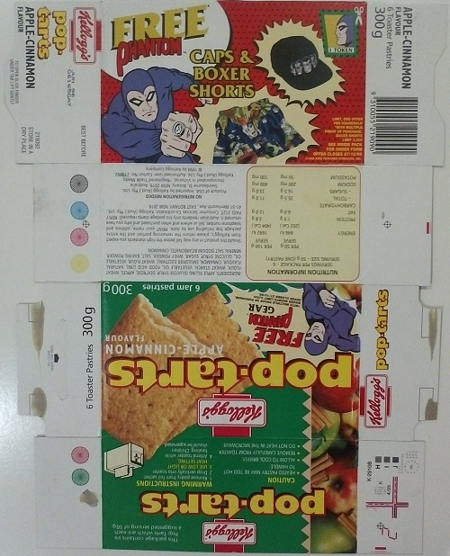 The Pop Tarts Giveaway was a promotion by Kellogg Pty Ltd in Australia in 1995. The promotion saw a Phantom Cap or Phantom Boxer Shorts given away free of charge, upon the collection of the correct number of tokens found on Pop Tarts packaging.
