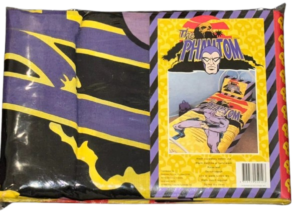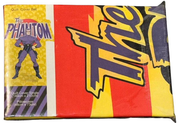 The Phantom Quilt Cover Set was produced by World of Linens in Victoria, Australia in 1999. The set is made of a quilt and pillowcase cover with Phantom images contained on both, which were distributed to retail stores throughout Australia by Smithtex Pty Ltd. The set is fully licensed by King Features Syndicate.