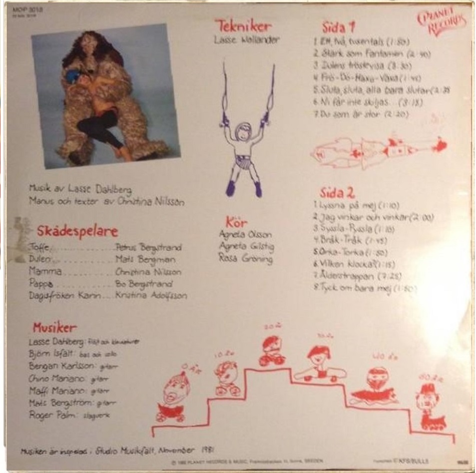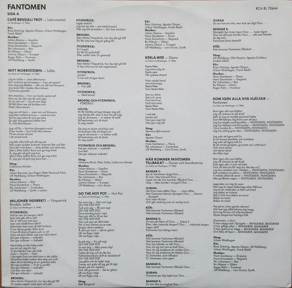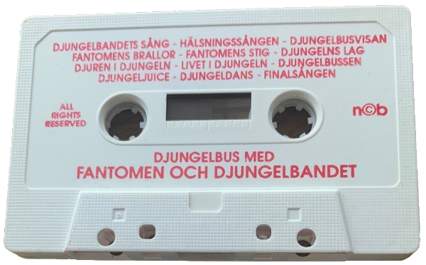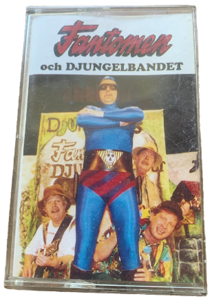 DJungel Bandet: The band consists of The Phantom (Stefan Wahlén), Mr. Timbuktu (Jörgen Lundberg), Colonel Weeks (Bengt Palm) and Papa Goja (Stefan Hedlund). Since 1992, Djungelbandet has produced musical performances for children in preschool and school. This CD was released in conjunction with the 1996 Phantom Movie and was a part of the Swedish “Drink Milk” campaign. Mixed with Rock and Calypso music this CD tells a story of “The Phantom” and his “Isle of Eden” jungle friends.